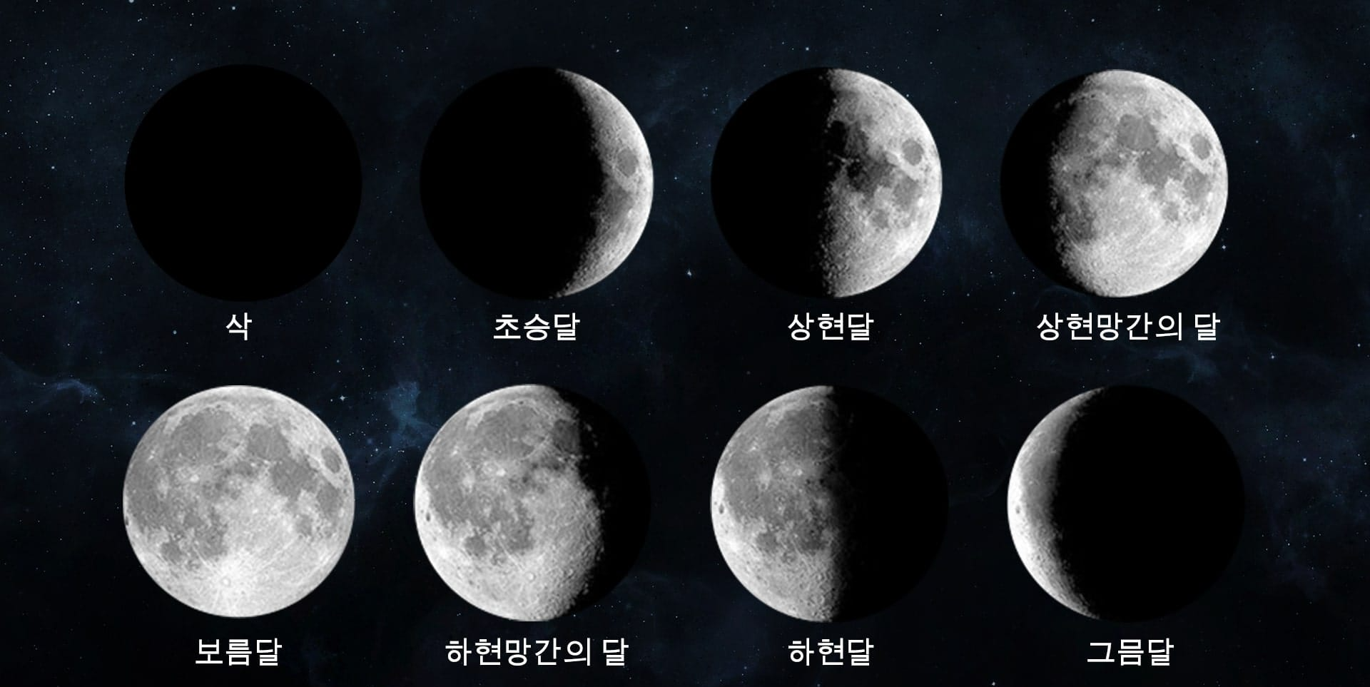 - 신월 후 점점 달의 오른쪽이 보이기 시작하여 반달이 되기 전까지의 상태.