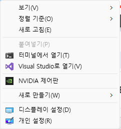 3. 아래와 같이 바탕화면에서 마우스 우클릭시 윈도우10 스타일의 메뉴가 나타남