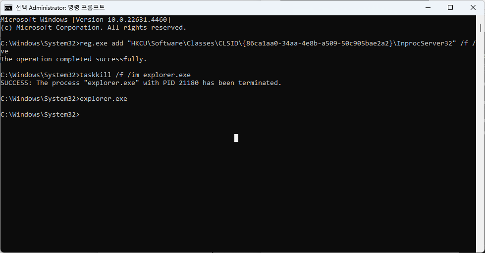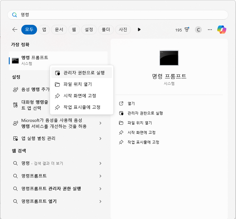 1. 명령 프롬프트를 관리자 권한으로 실행