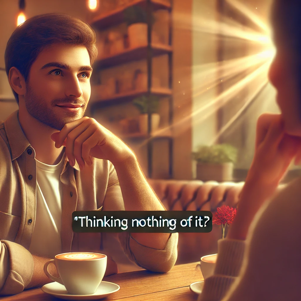 - He offered his seat to the elderly lady, thinking nothing of it.