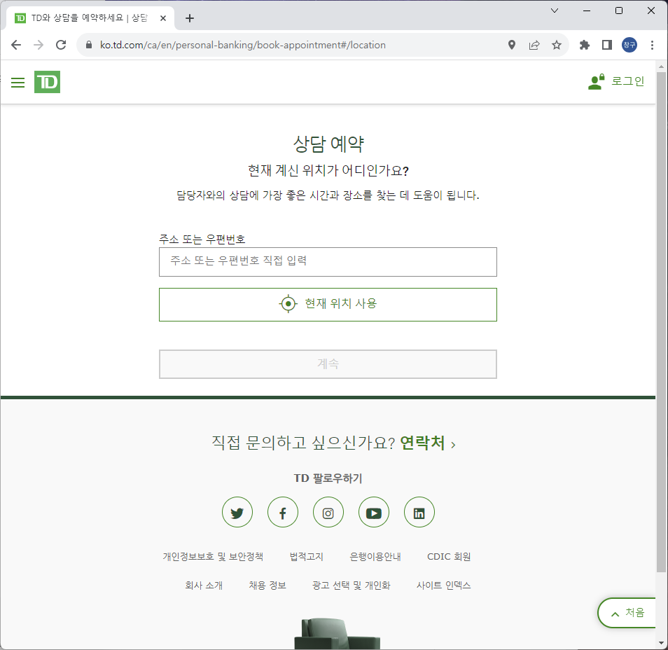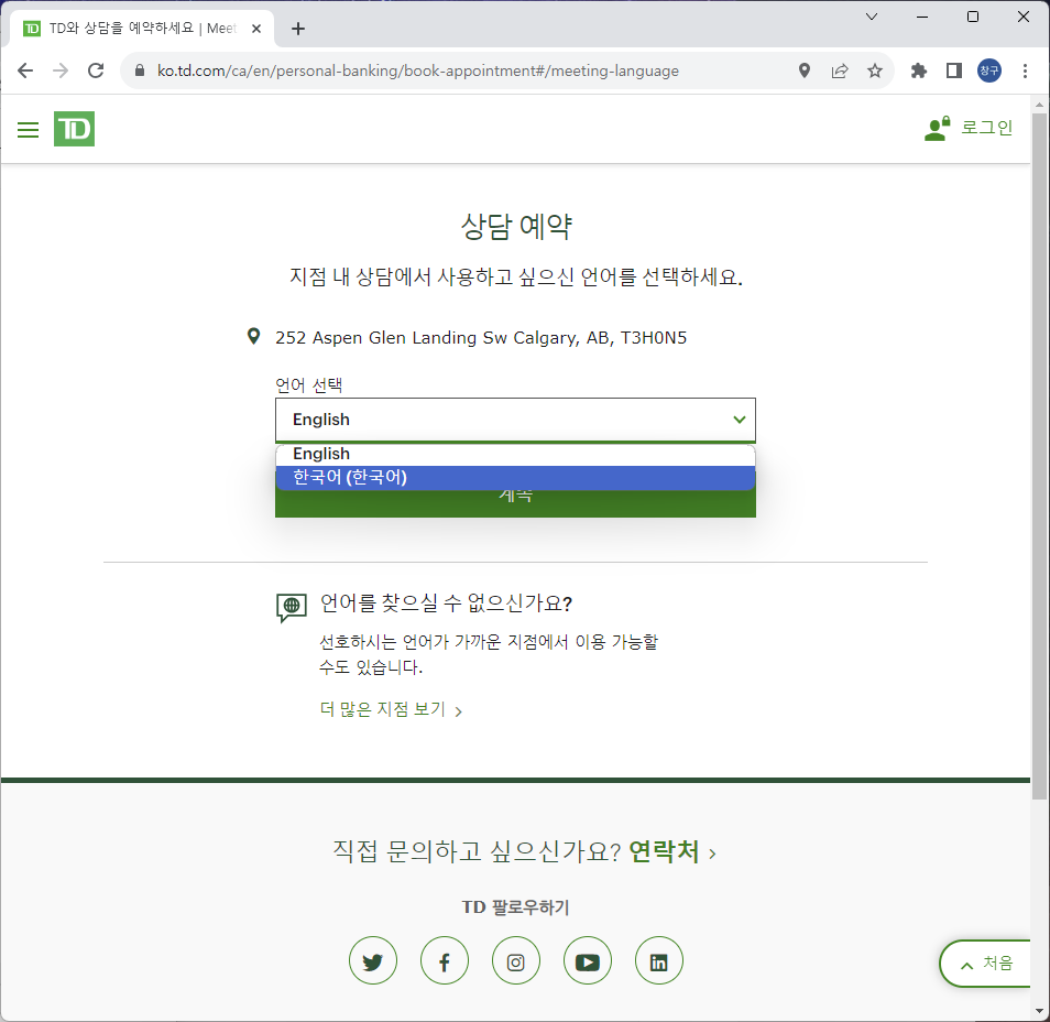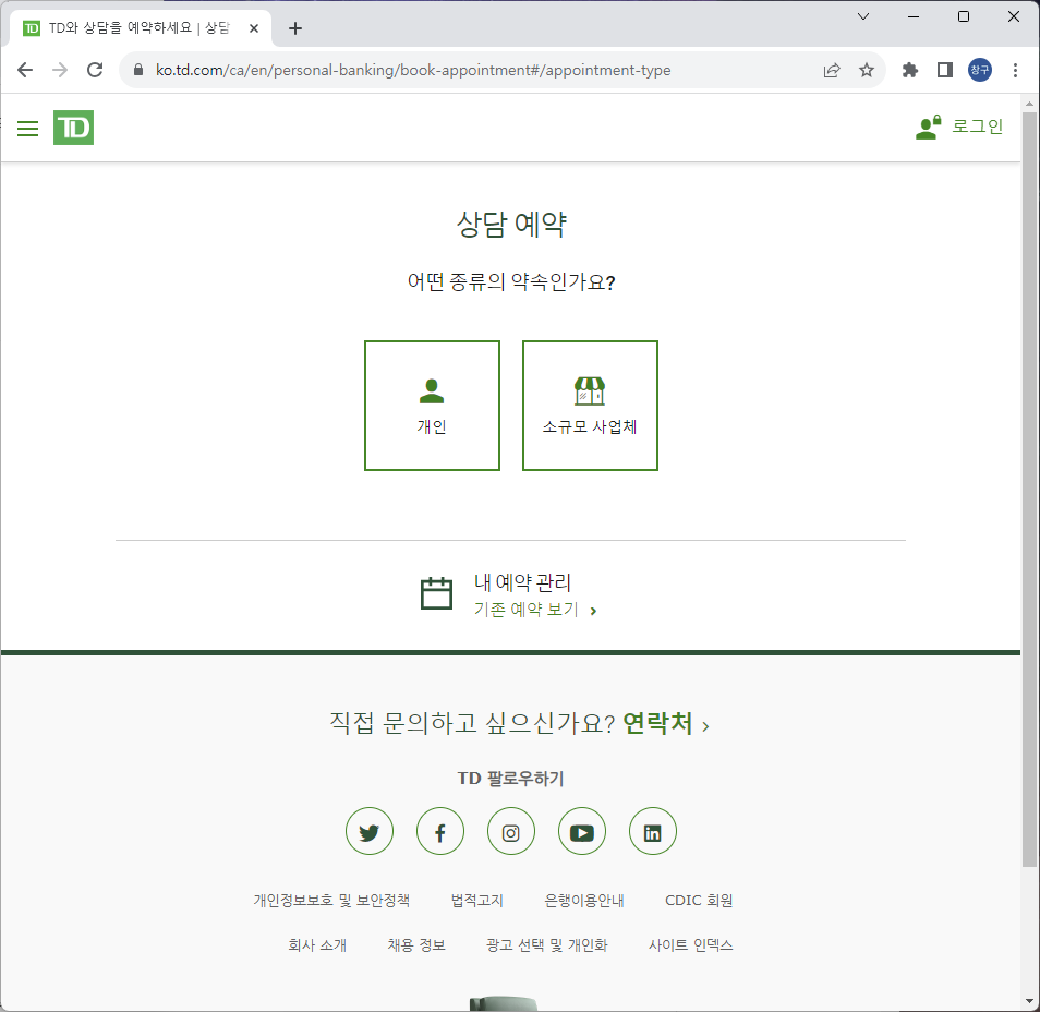 (https://ko.td.com/ca/en/personal-banking/book-appointment#/appointment-type)