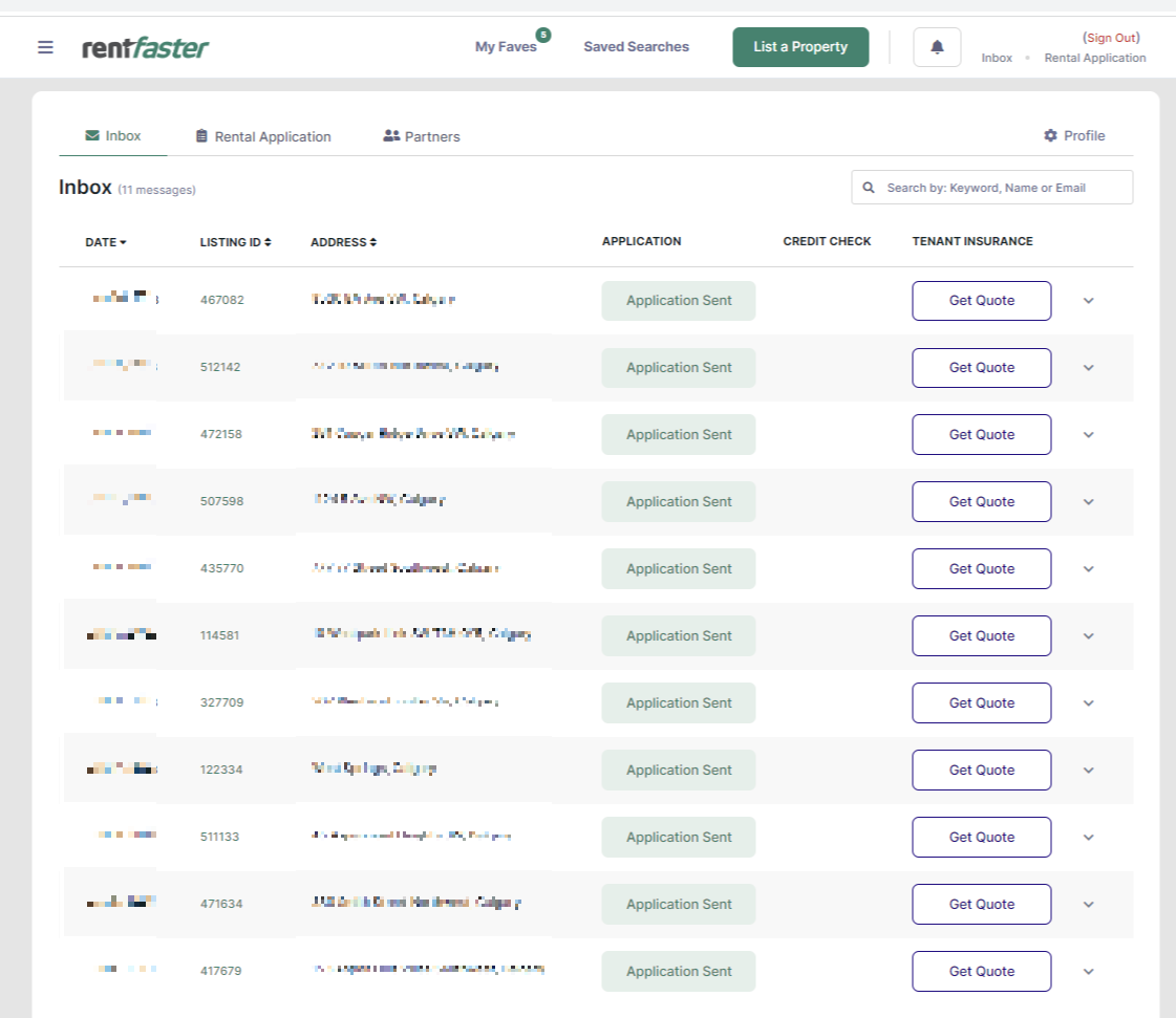 아래는 제가 신청한 렌탈 집입니다. 아래와 같이 10개 넘게 보냈는데, 반 정도만 메시지가 왔습니다.
