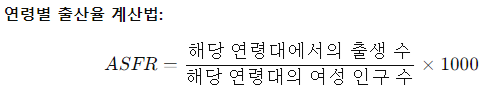 - 연령별 출산율(ASFR, Age-Specific Fertility Rate)