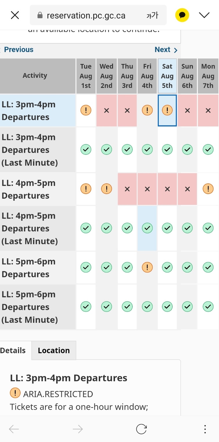 셔트버스 티켓은 캐나다 관광청에서 운영하는 Park Canada Reservations 홈페이지를 이용해주세요.