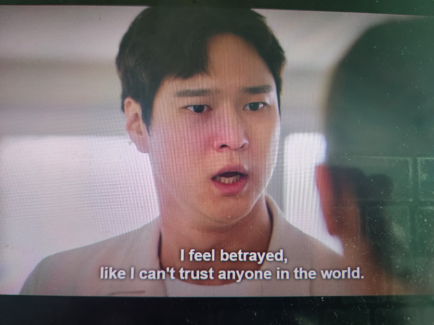 I feel betrayed, like I can't trust anyone in the world. 믿는 도끼에 발등찍힌 기분이 고 믿을 놈 하나 없는 기분이에요.
