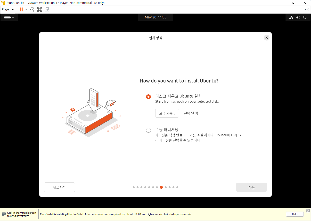 19. 일반적으로 디스크 지우고 Ubuntu 설치 선택 후 다음
