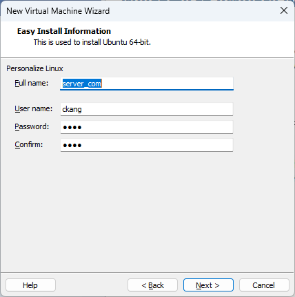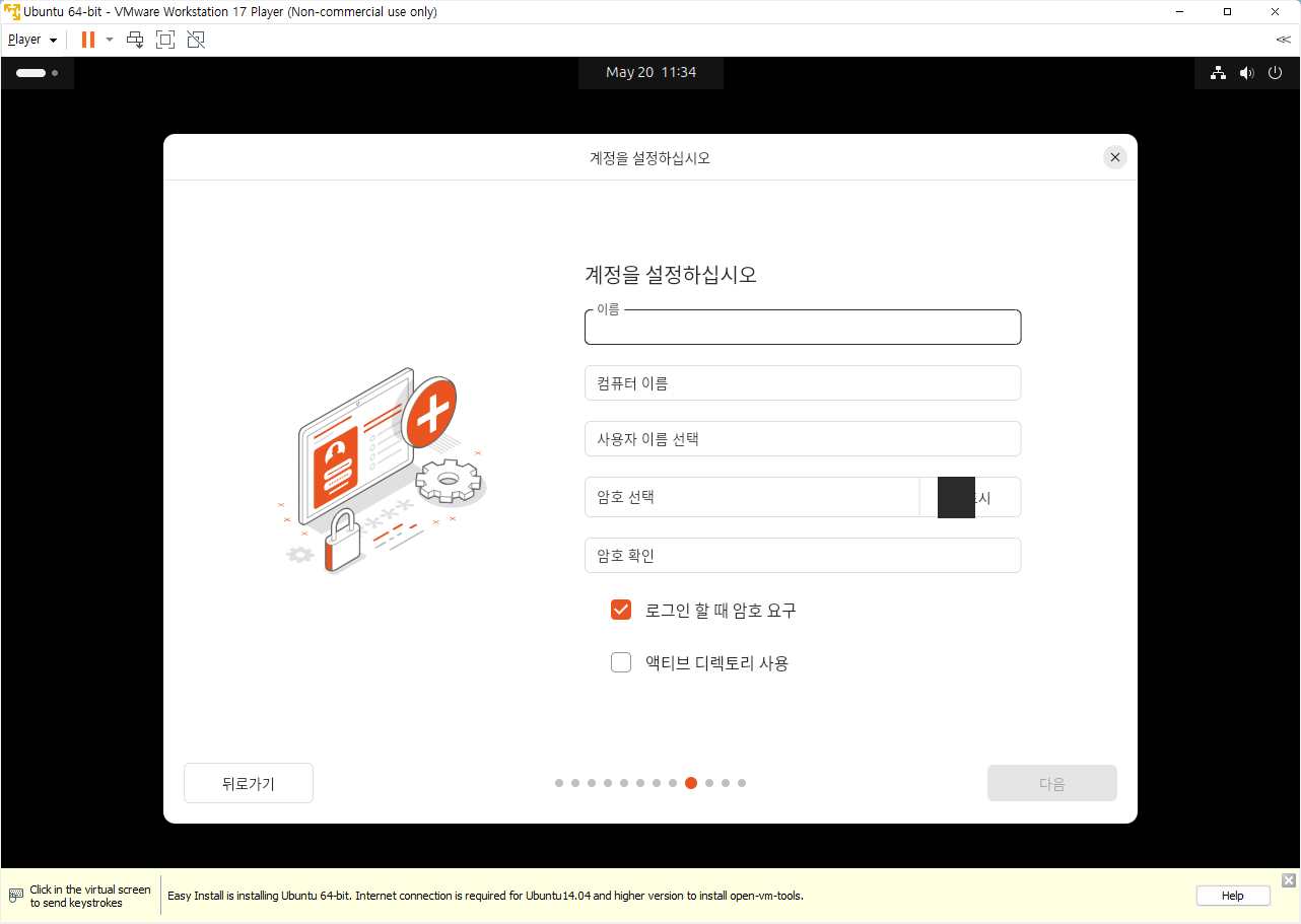 11. Next 후 아래와 같이 Full name, User Name, password 설정