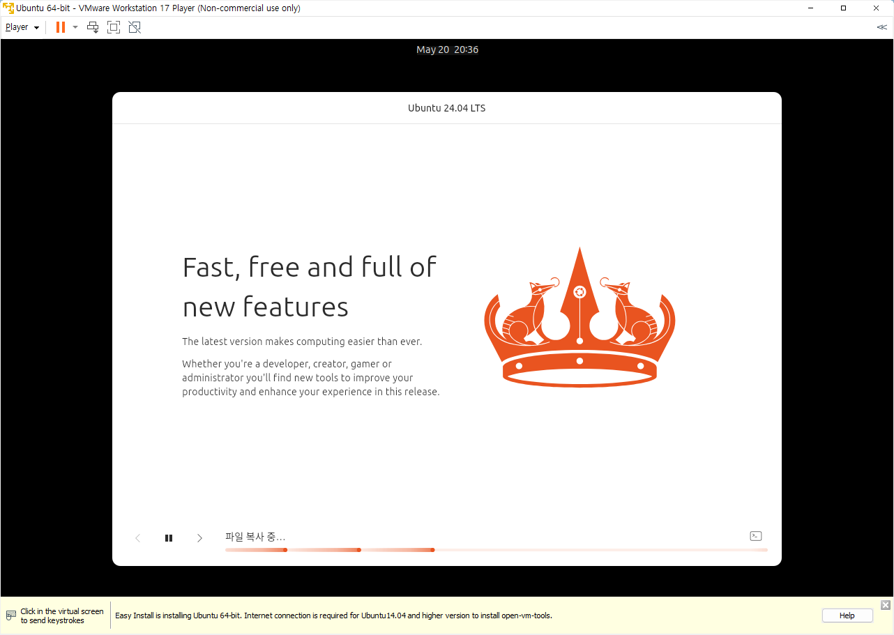 * 대화형 설치(Interactive Installation): 사용자가 우분투 24.04 설치 도우미와 상호작용하여 설치에 필요한 각종 설정 정보를 우분투 설치 프로그램에 제공하여 설치를 진행하는 방식