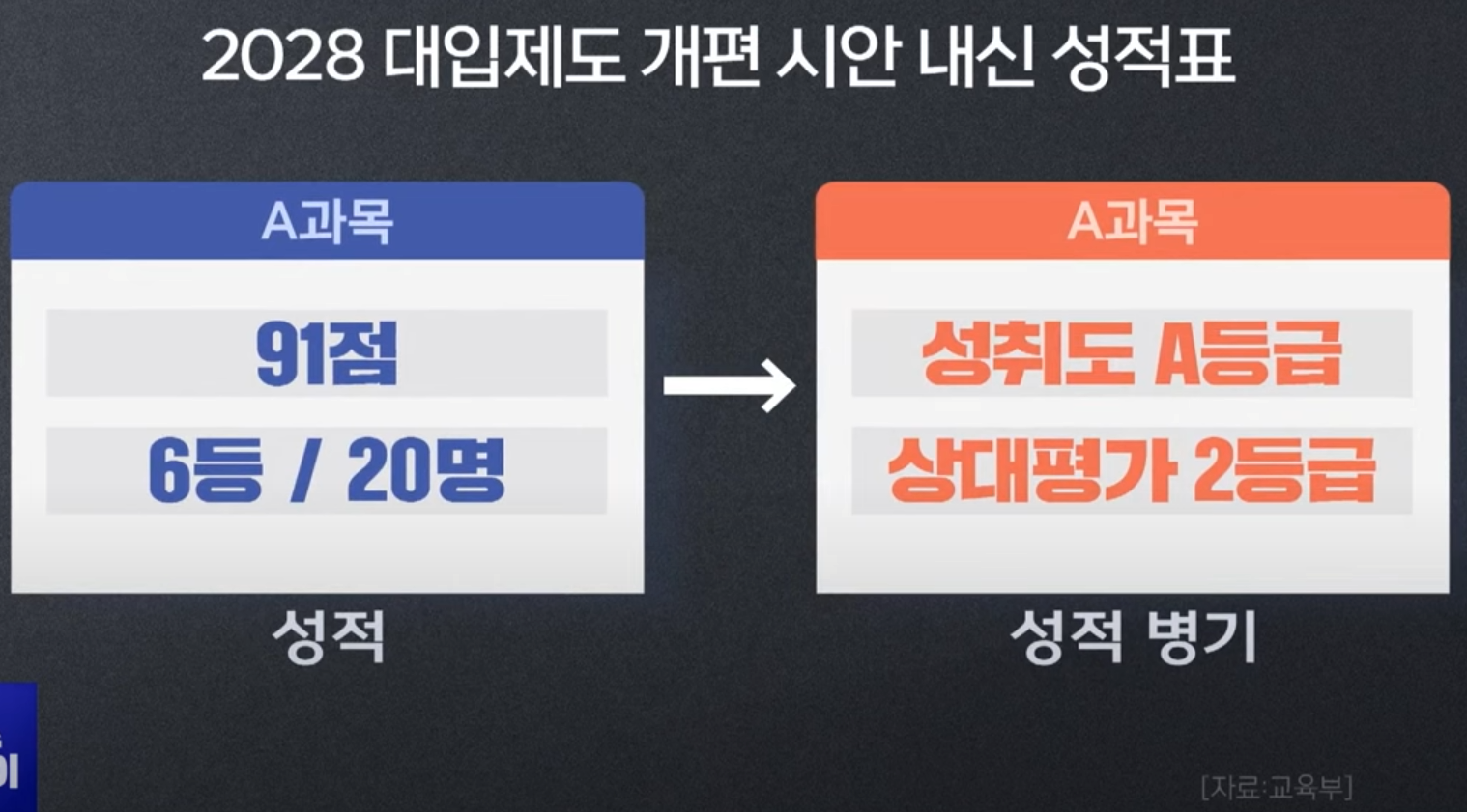 (현행)내신9등급 -> (2028년) 내신 5등급 (절대 상대 등급 함께표기)