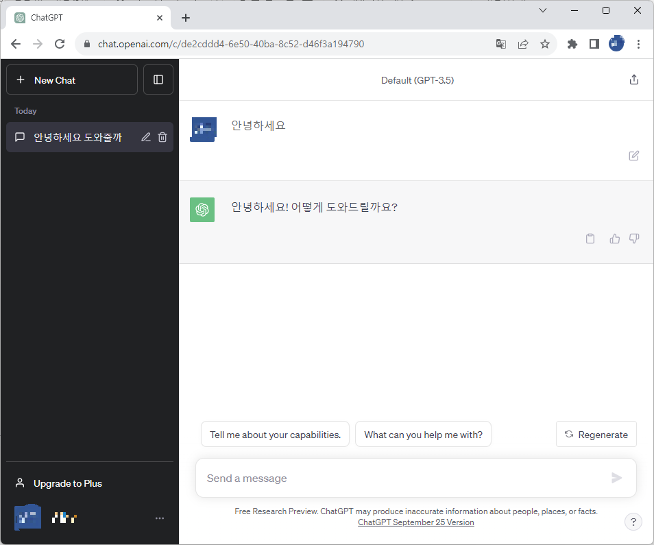 5. 로그인 후 아래에 Send a message에 원하는 질문을 입력