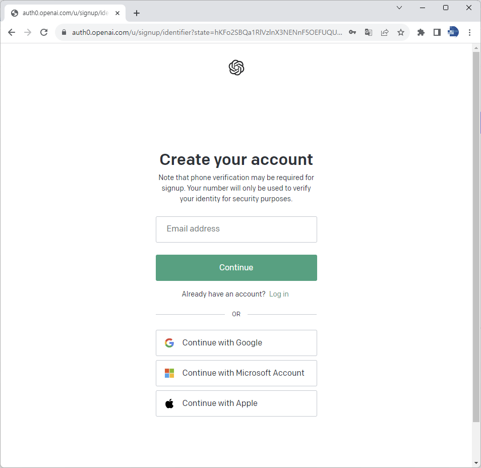3. Email address 에 자신이 가입하고자 하는 메일 주소 입력(4.1에 설명) 또는 아래에 원하는 Continue with Google, Continue with Microsoft Account, Continue with Apple 중 선택(4.2에 설명)